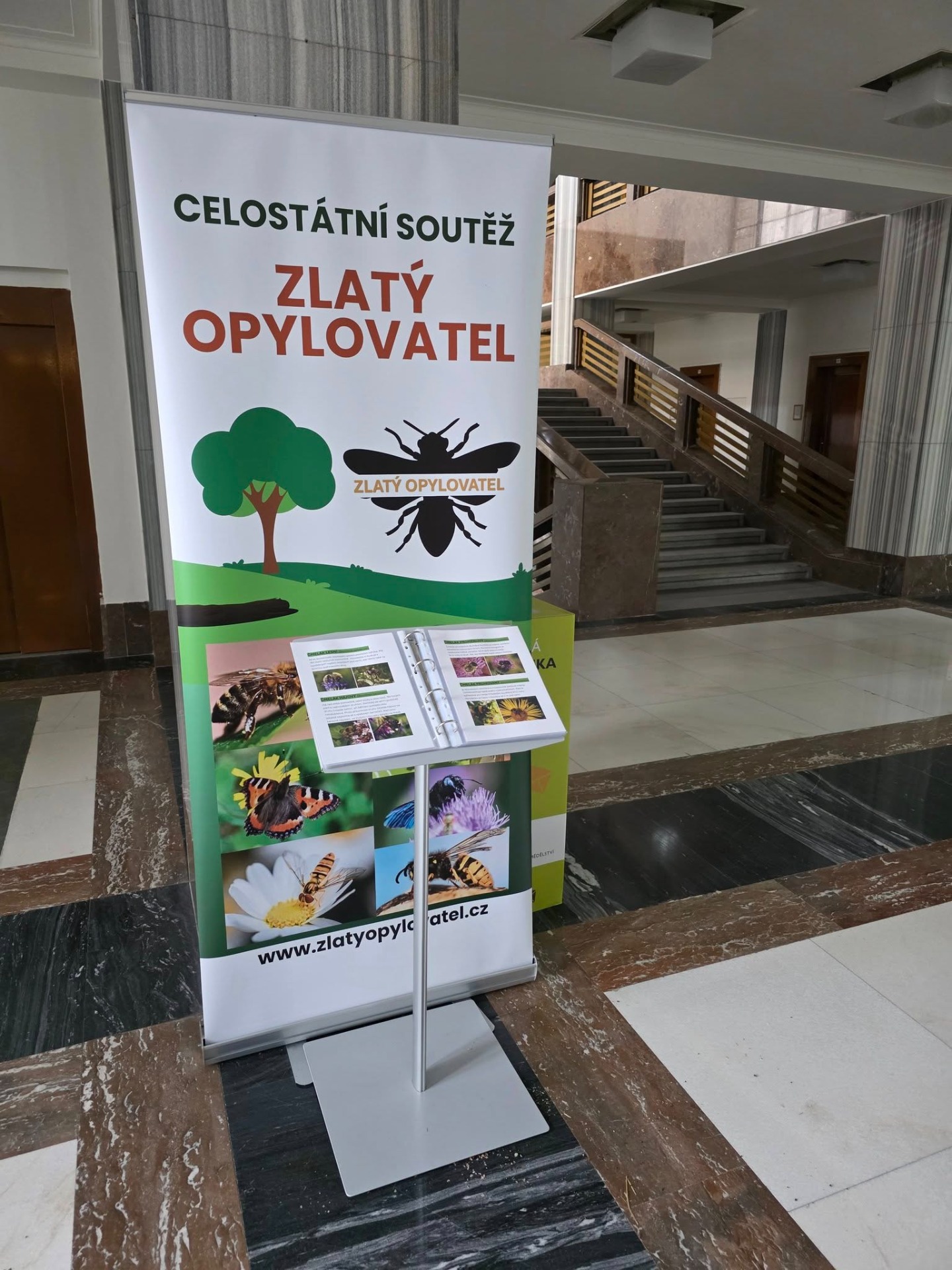 V rámci výstavy "TADY TO BZZZUČÍ", kterou instaloval spolek VČELÍ STRÁŽ po celé budově Ministerstva zemědělství ČR, se představuje i soutěž ZLATÝ OPYLOVATEL.